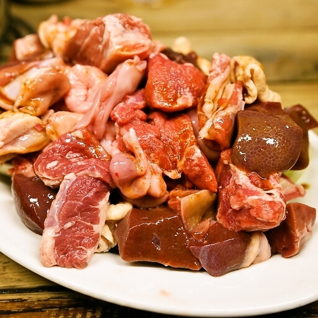 一瞬で見てわかる新鮮な色合いのホルモン、そして盛り合わせはこれでもかといろいろな部位が入ったボリューム満点の一品。