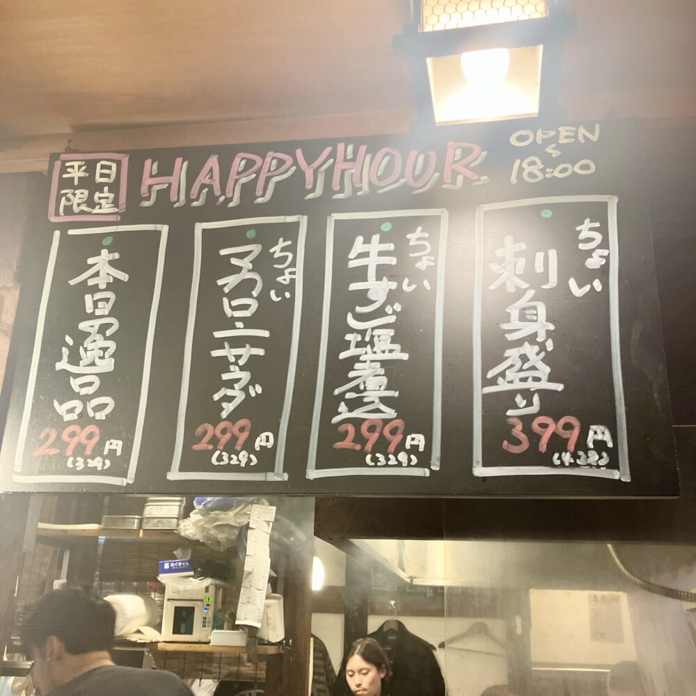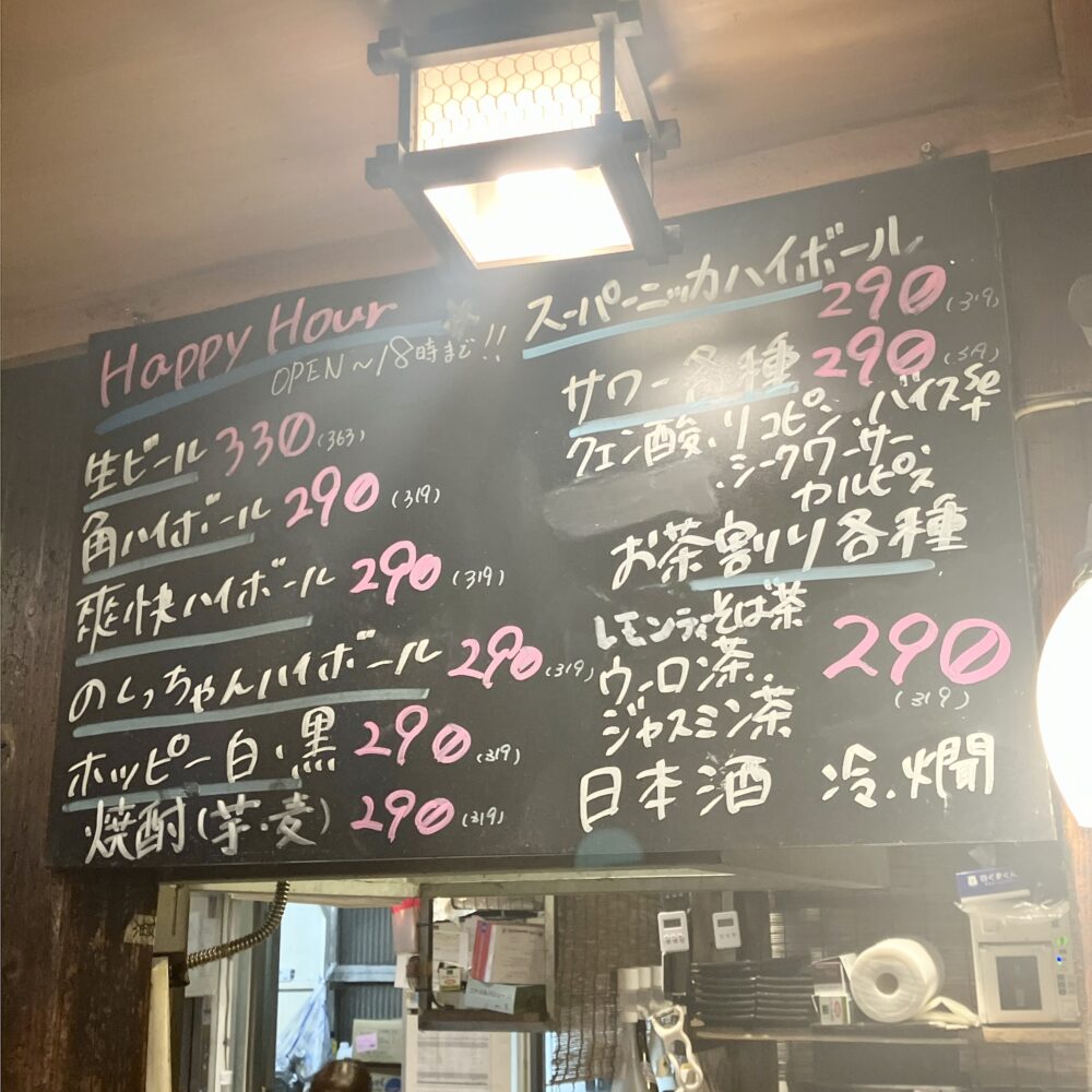 せんべろセットはなくなっていたみたいで、代わりにハッピーアワー対象の料理が増えていました(・∀・)イイ!!