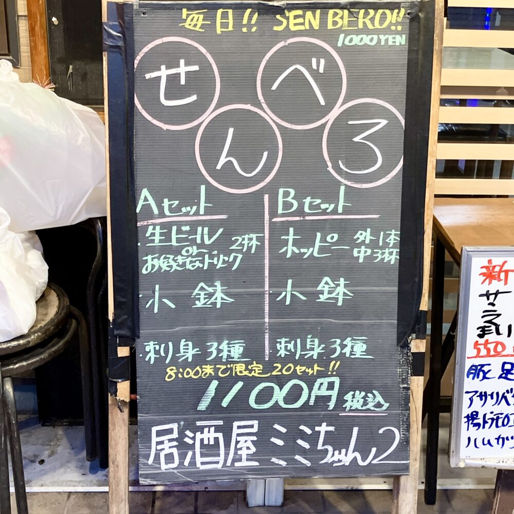 入口の写真にもチラッと写っていますが、おトクなせんべろセットがあるということで、ずっと気になっていたお店でした^^