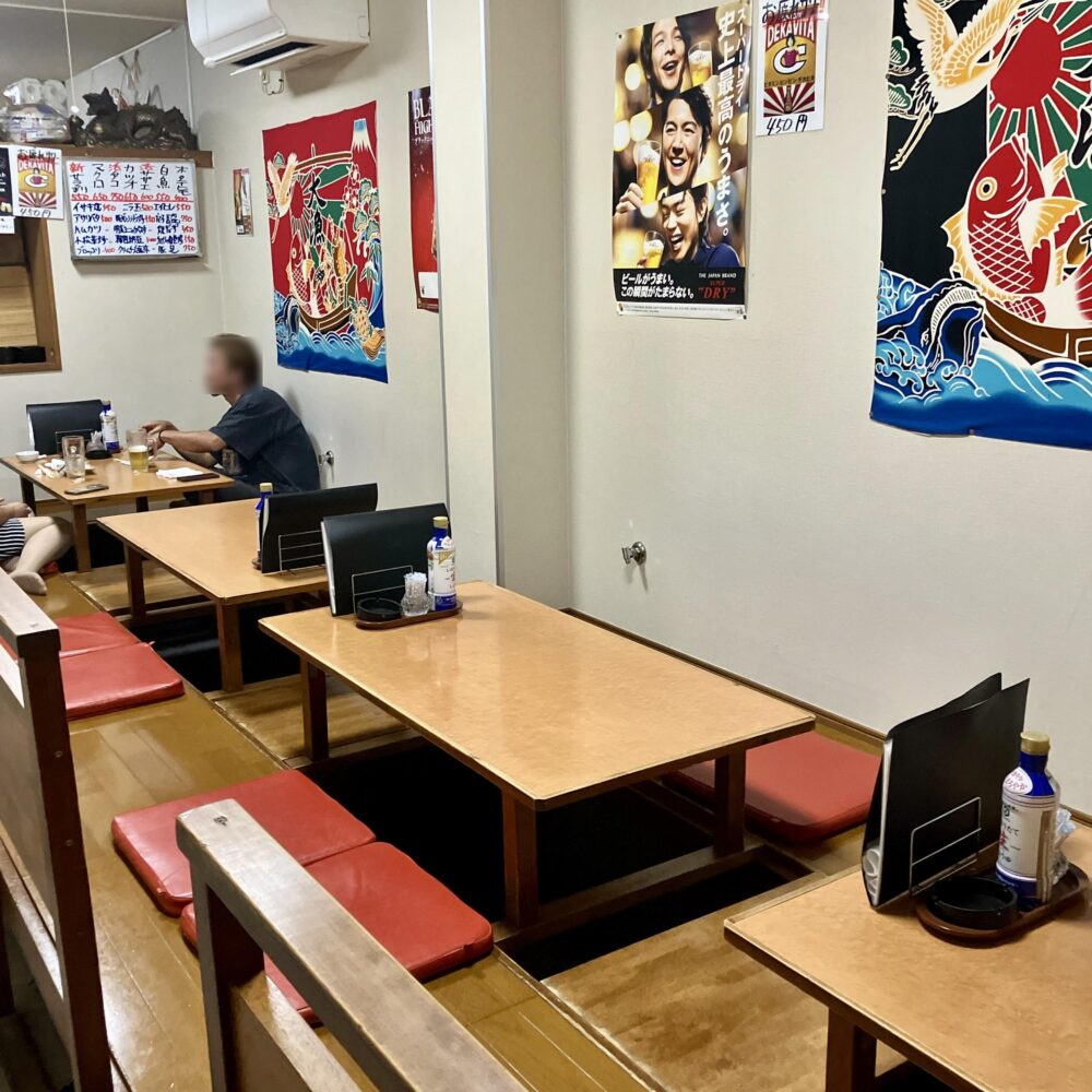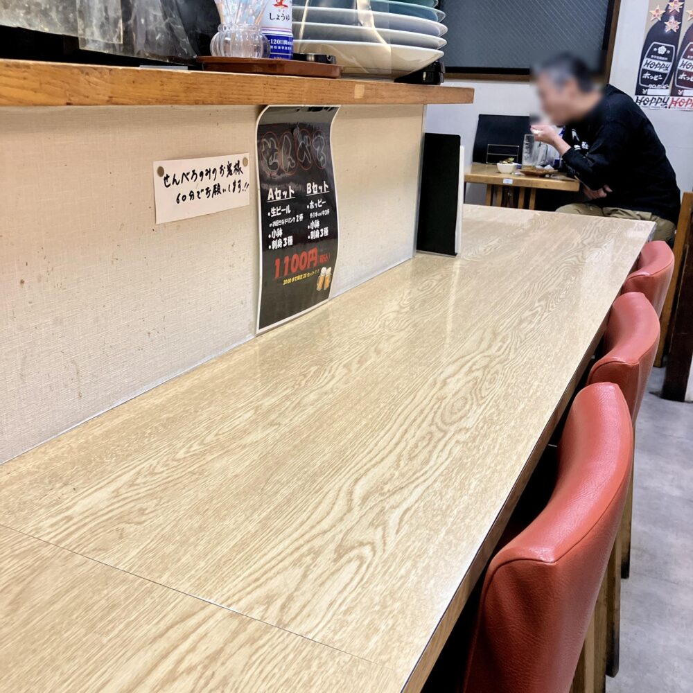 席はすべて座り席で、カウンターが6席にテーブル席が8席くらいですかね