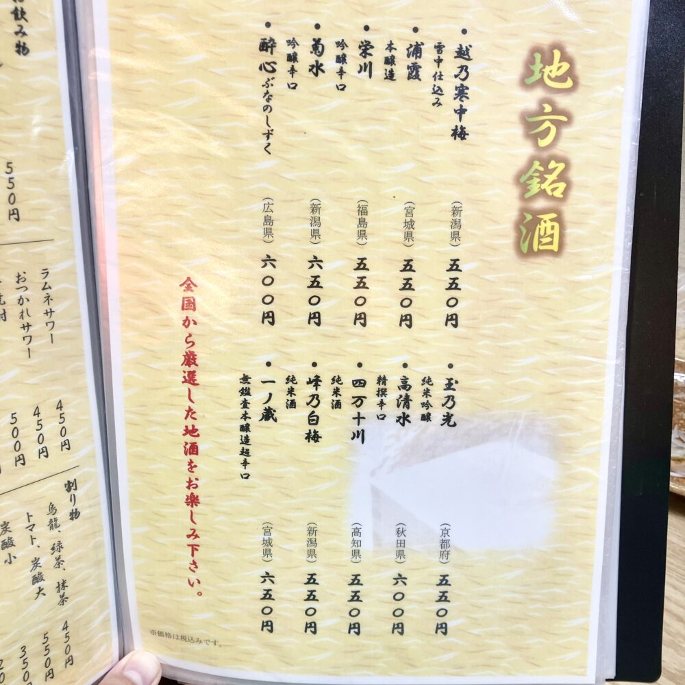 あとは日本酒が結構充実しているようです、値段も比較的リーズナブルかなと。
