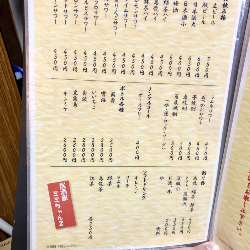 元々近くで、今の店主さんのお母様が「居酒屋ミミちゃん」を経営しており、その流れを汲んで”2”となるこちらのお店をオープンしたとのこと