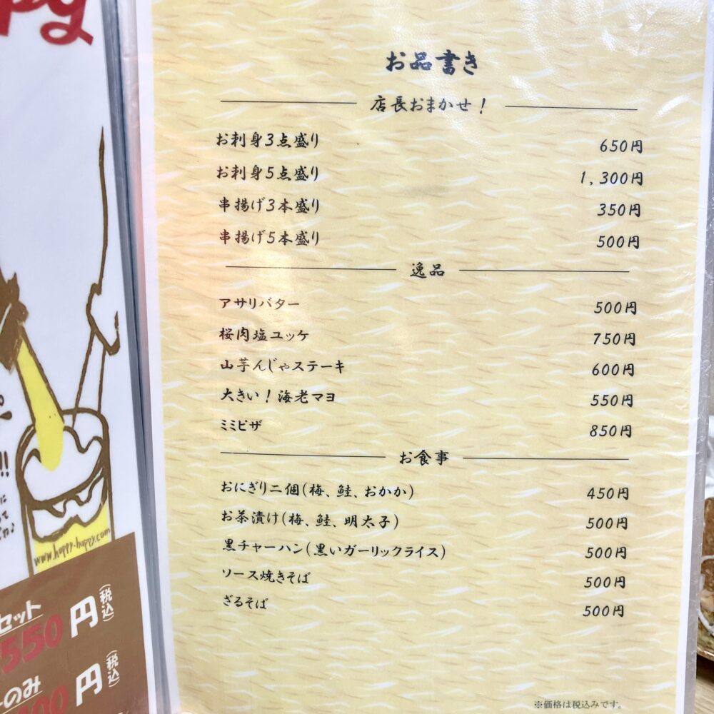 The 居酒屋メニューといった感じですかね、値段も500円前後に抑えられていて全体的にお安めかなと。