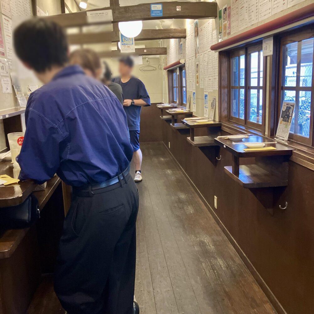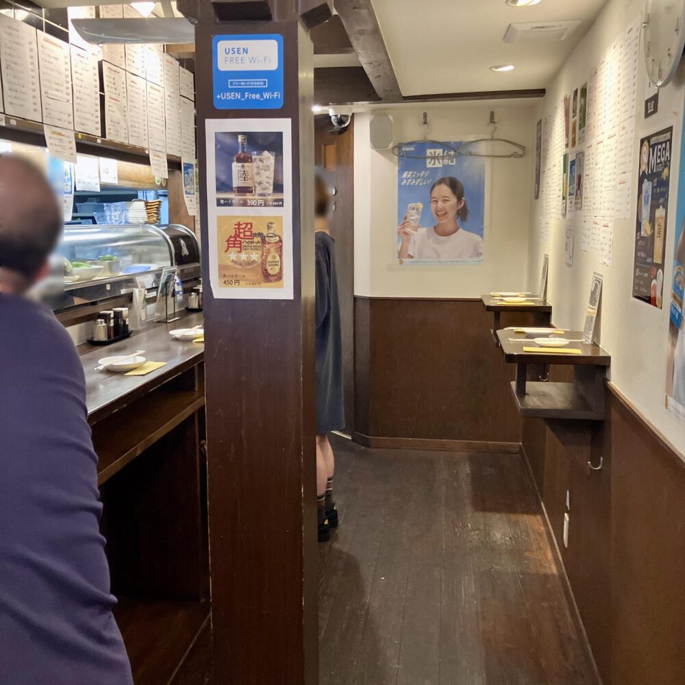 すべて立ち席、カウンターと奥に1つだけテーブルがあり、計35席くらいだったかなと。