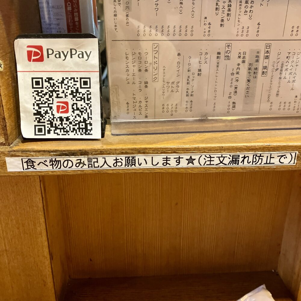 ちなみに注文はこの紙に書いて店員さんに渡すスタイル(食べ物のみ記入)