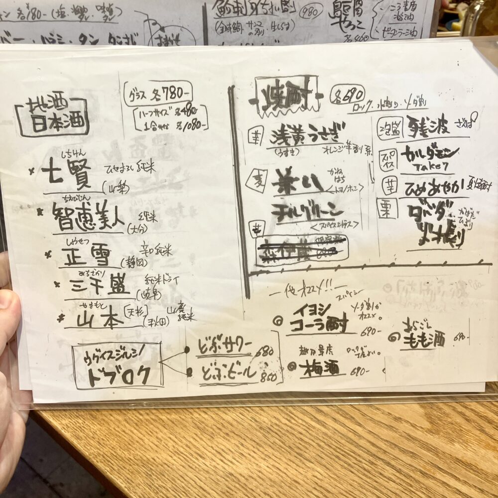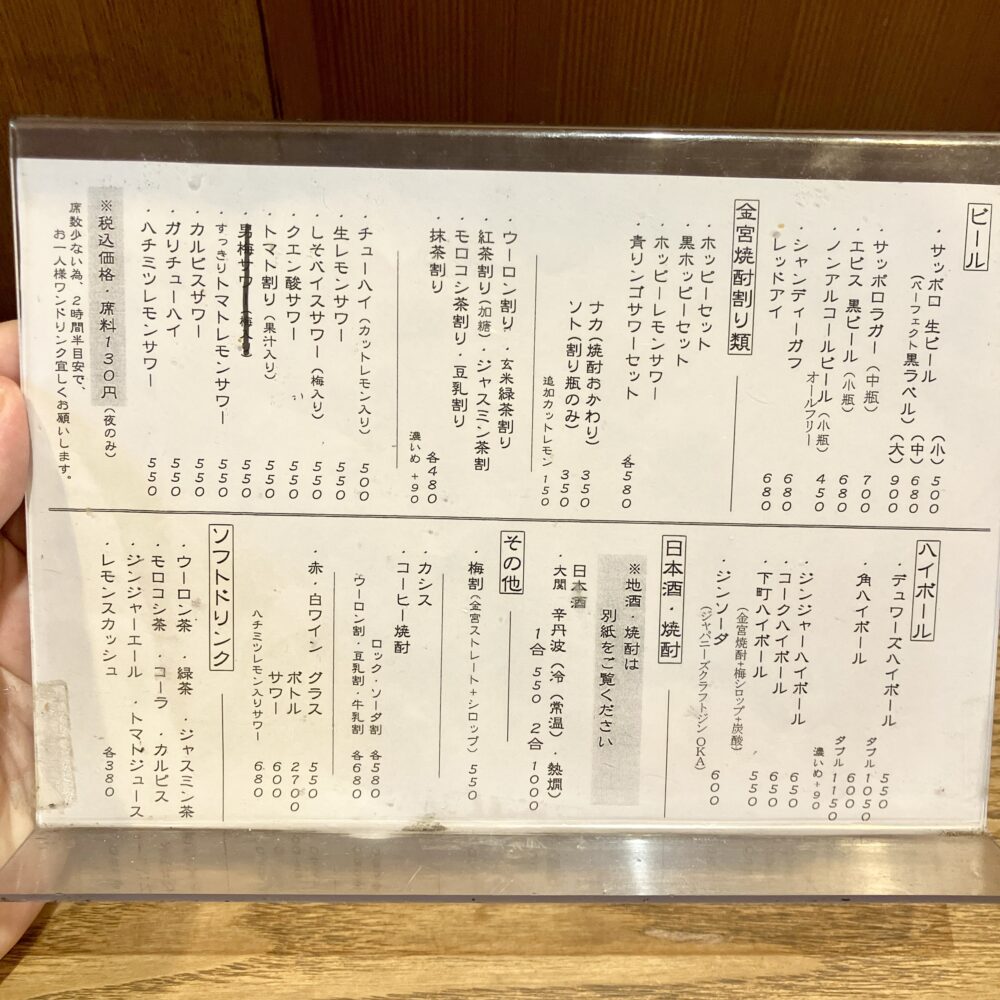 最安はサワー系で480円、基本500円を超えるメニューが多く正直価格的にはそこまで安くはないかなと。