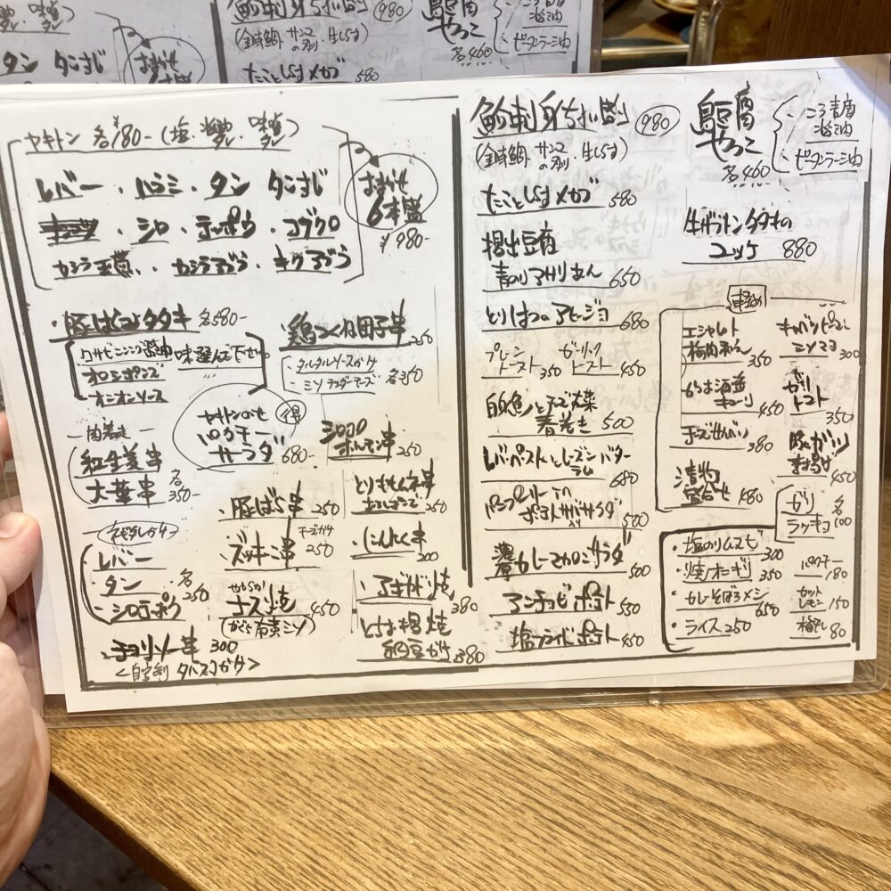 1本180円~、味付けは塩・タレのほか味噌ダレもありますね、さすが秋元屋系のお店といった感じ