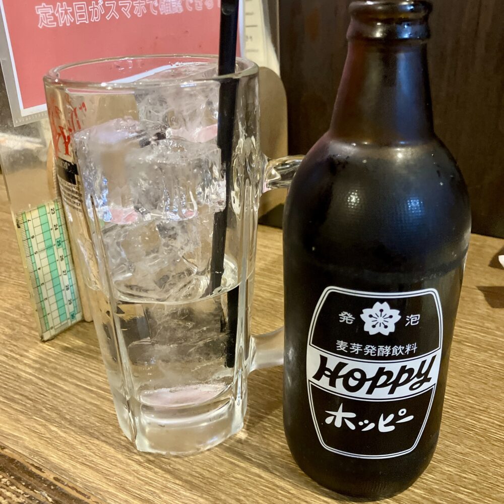 ・メインは”大串”を謳う大きめもつ焼きで1本150円~!ホッピーもなか多めで良き☆