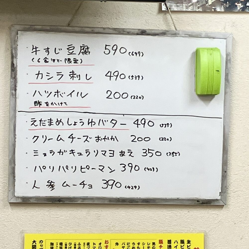 あとはホワイトボードにいくつかおすすめメニューがあるので、こちらも要チェックですね( ・ὢ・ ) ムムッ