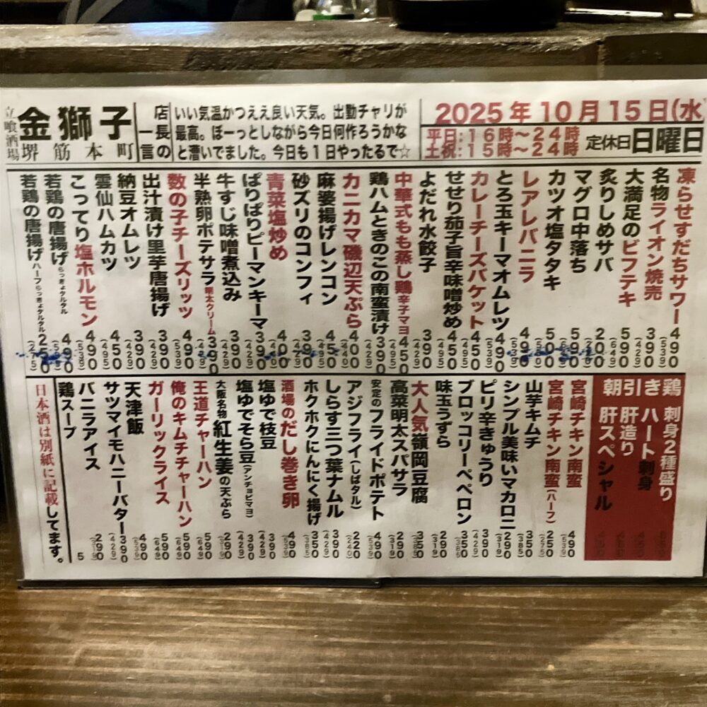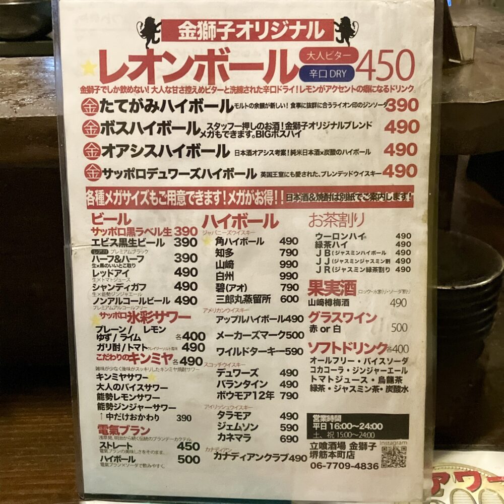 今回紹介するのは「立喰酒場 金獅子 堺筋本町店」さん