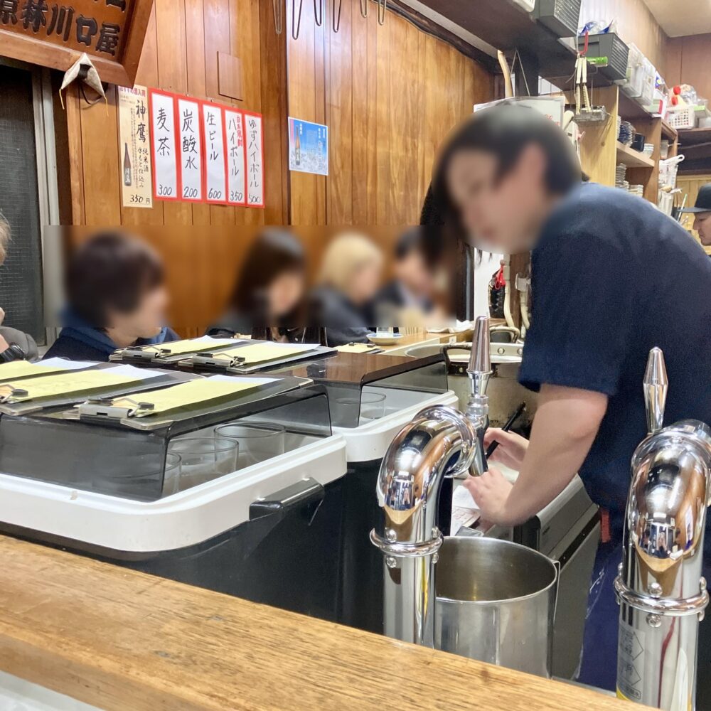 年齢層は結構幅広いですね、一人飲みとグループは半々くらい、酒好きが集まっているな~という印象でした