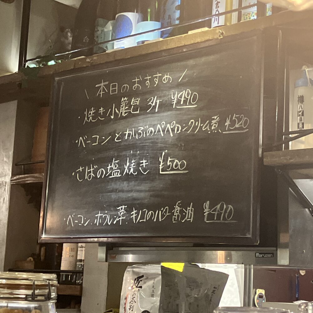 日替わりのおすすめ品含めても、全体的に酒のつまみになるちょっとしたアテ的なものが多い印象でした。