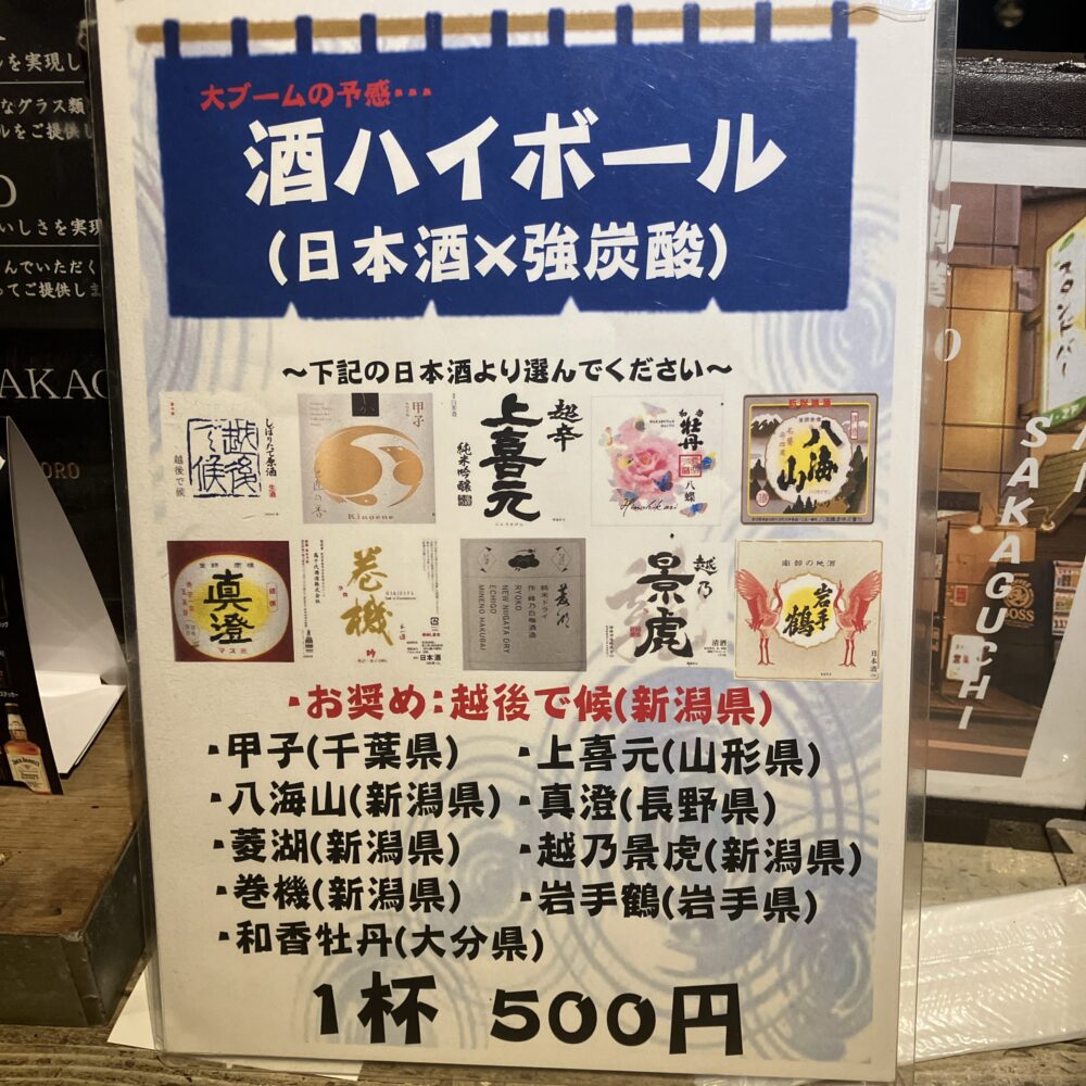 それ以外にも、日本酒ハイボールや最近良く見かけるいいちこをベースとした”いい茶こ”等、一風変わったお酒が多数