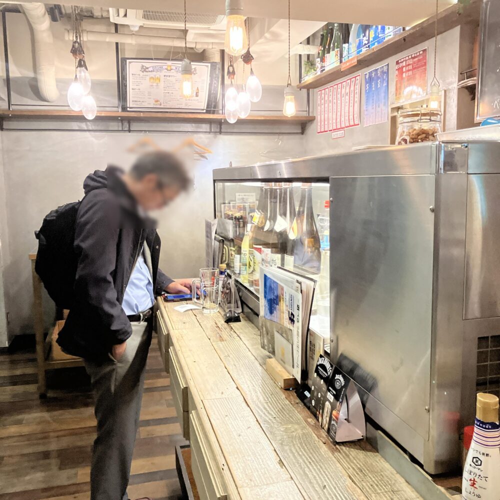 一人飲みの方とグループの方は半々くらいですかね、場所柄もあるのか年齢層は高めかなと