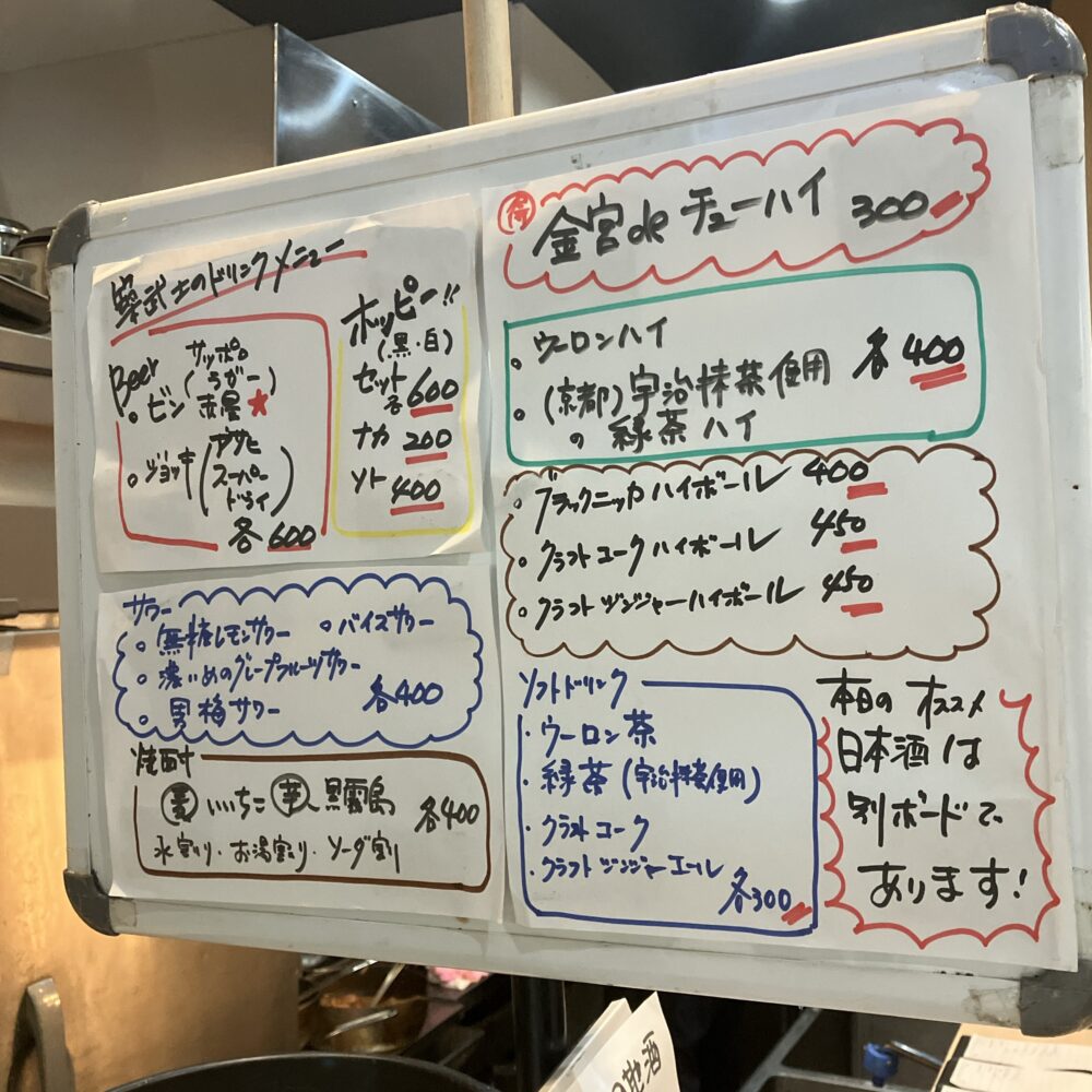 最安は金宮チューハイで300円、他チューハイ系やハイボールは400円台と比較的リーズナブル
