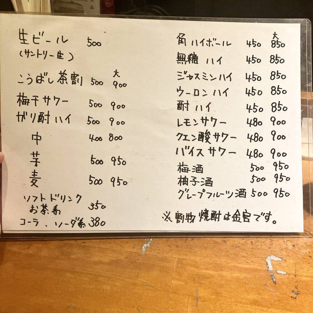 最安は一部チューハイ・ハイボール系で450円、その他のドリンクも500円以内に収まっていますね