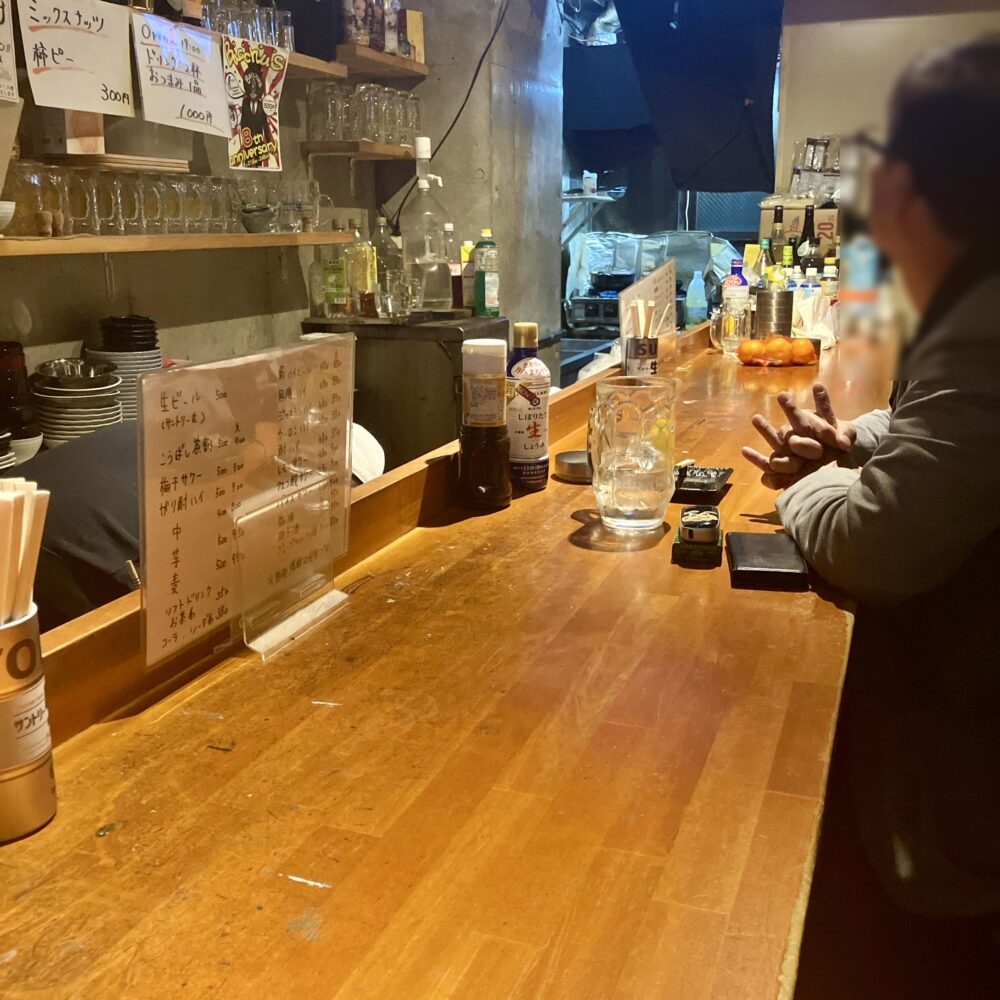 やはり”立ち呑み”と謳いながらも座れるタイプのお店でした、一人あたりの広さもそれなりにあって良き^^