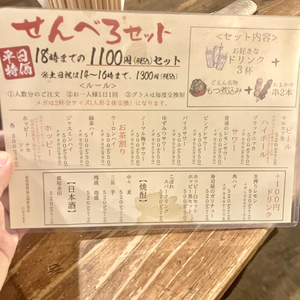 ・せんべろ時間帯は平日18時土日祝16時迄、早い時間帯で安くおトクに飲むべし☆
