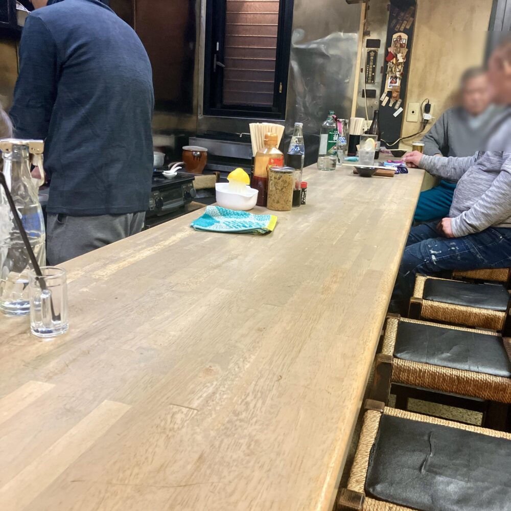 席はすべて座り席、カウンターのみで10席、席間隔は結構狭くはありますね