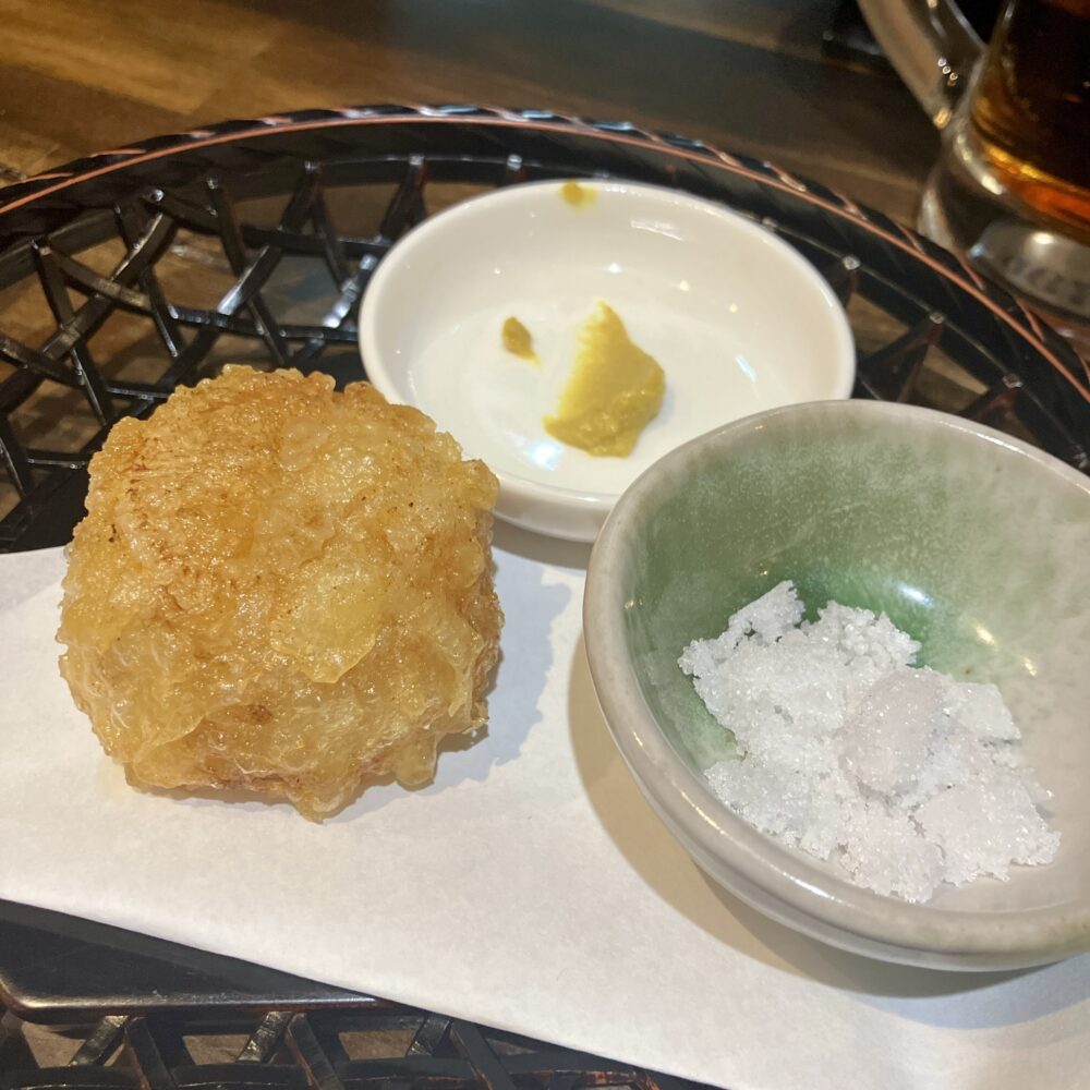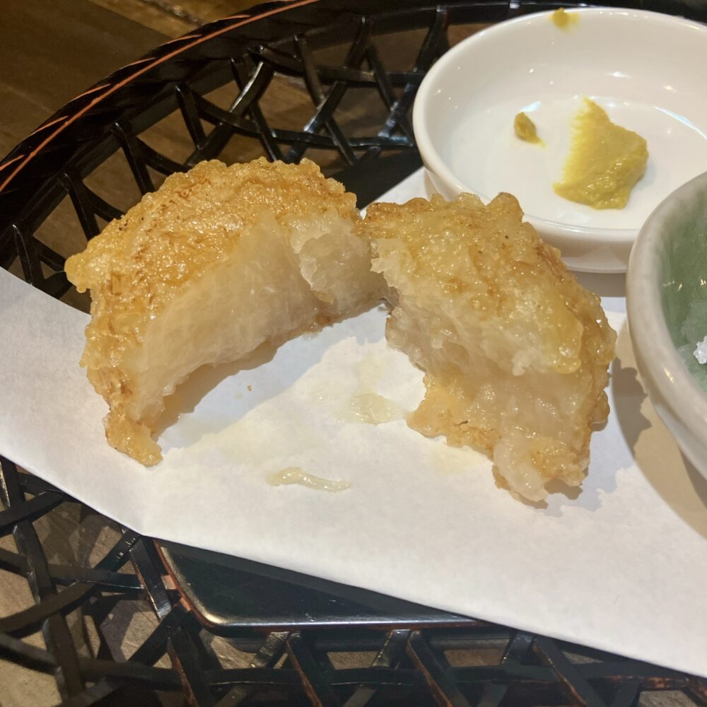 しっかり揚げでカリッとしているからこそ、長芋のしっとりさが際立っていて良き