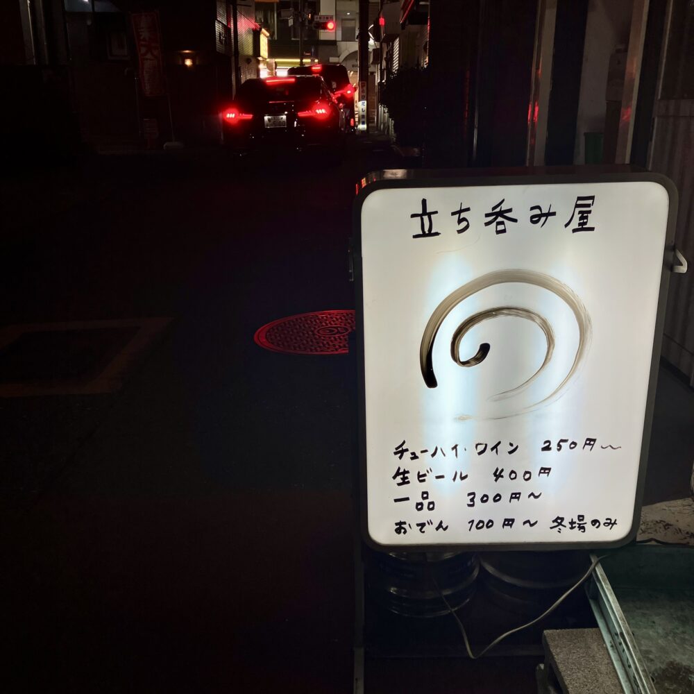 創業は2016年、駅前の繁華街からは少し離れた路地裏にポツンと佇む立ち飲み屋さん