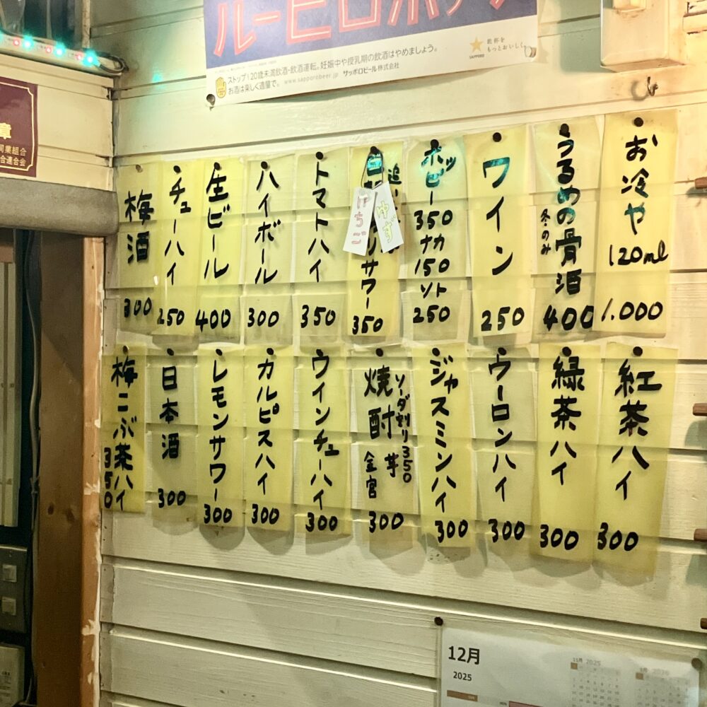 最安はチューハイやワインで250円、その他も基本300円で一番高くても400円という安さ(゚∀゚)アヒャヒャヒャヒャ