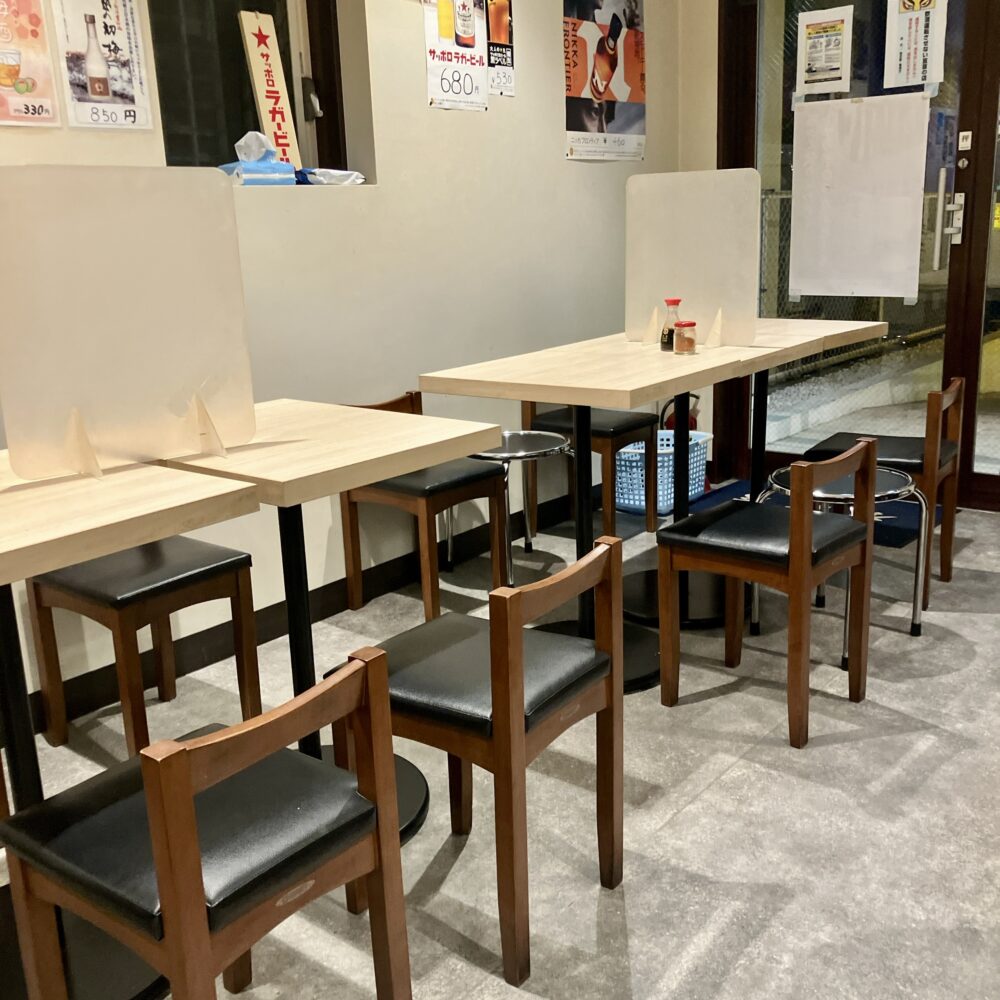 席はすべて座り席で、カウンター10席とテーブル20席で計30席程度