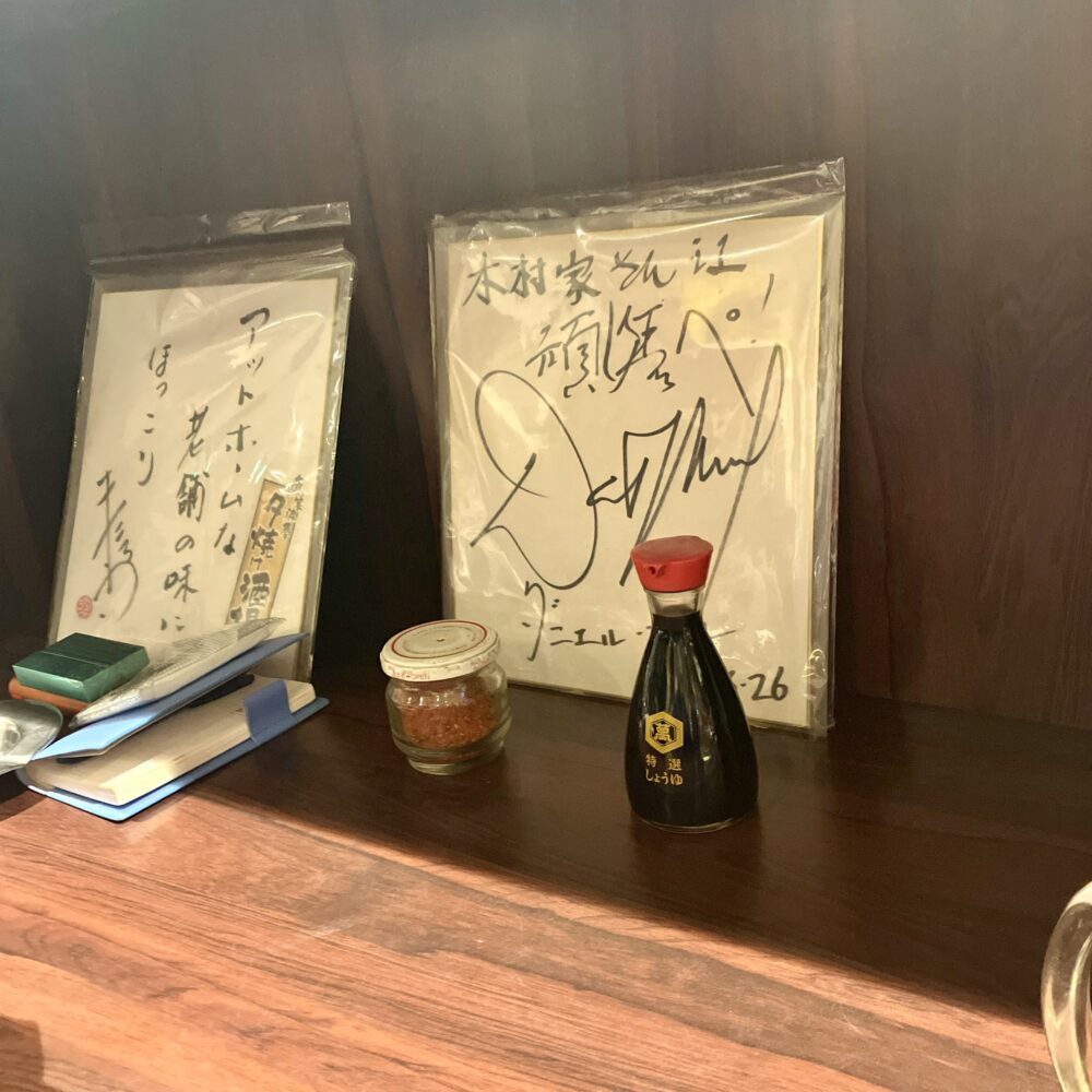 また、吉田類御大も訪れていたりとメディアでの紹介実績もあり、カウンターには著名人らしきサインもちらほら