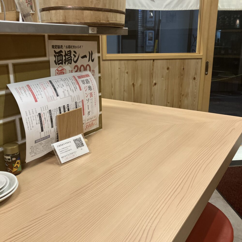 席はすべて座り席で、入口付近にカウンター席が7席、奥の方にテーブルがあって30席程