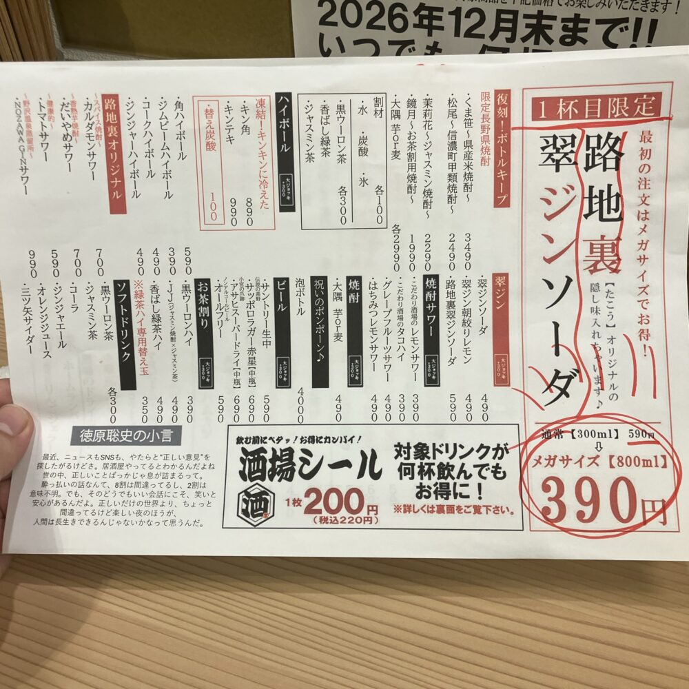 ・1杯目限定”路地裏翠ジンソーダ”がすごい!800mlメガサイズ390円は激アツ☆