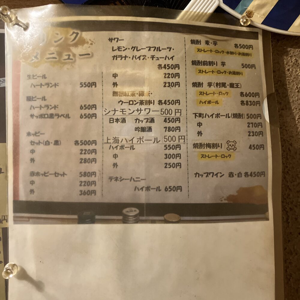 最安はサワー系や日本酒で450円、その他も500円台のものが多くそこまで高くはないですね。
