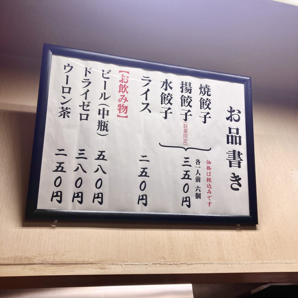 餃子通りにあるお店とは対称的に、待ちのお客さんはいたものの、5分程で入店することができました。