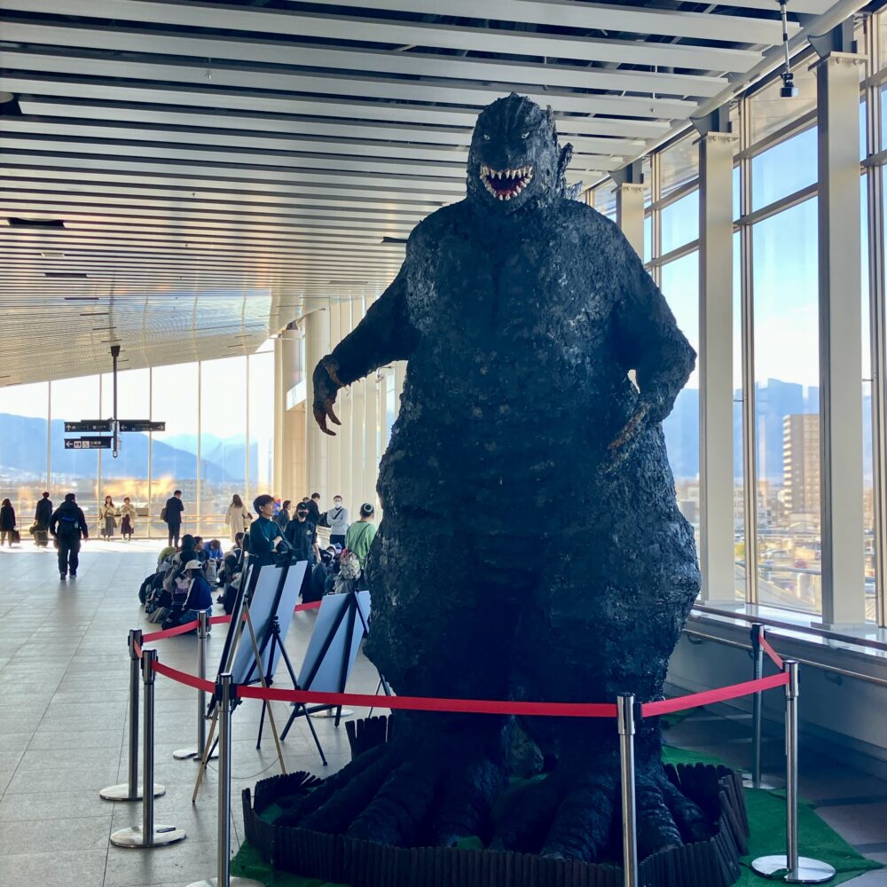 改札を出て早々、迫力あるゴジラがお出迎えヽ(ヽ゚ロ゚)ヒイィィィ!!