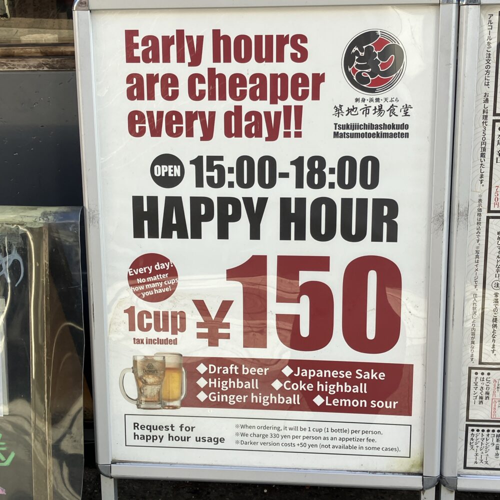 店前には呑兵衛の心をくすぐる”ハッピーアワー“の文字(゚∀゚)アヒャヒャヒャヒャ