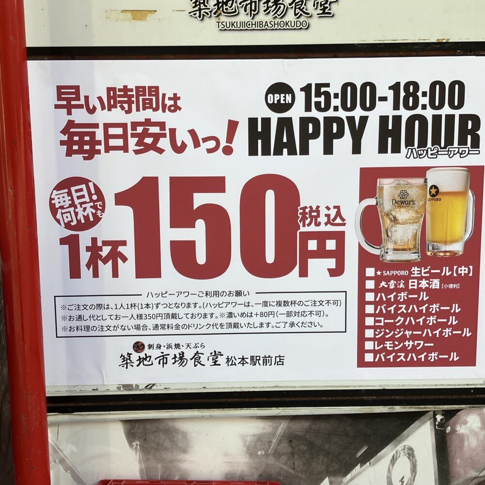 ・松本駅近では貴重な昼飲みスポット、15-18時はハッピーアワーで生150円!!