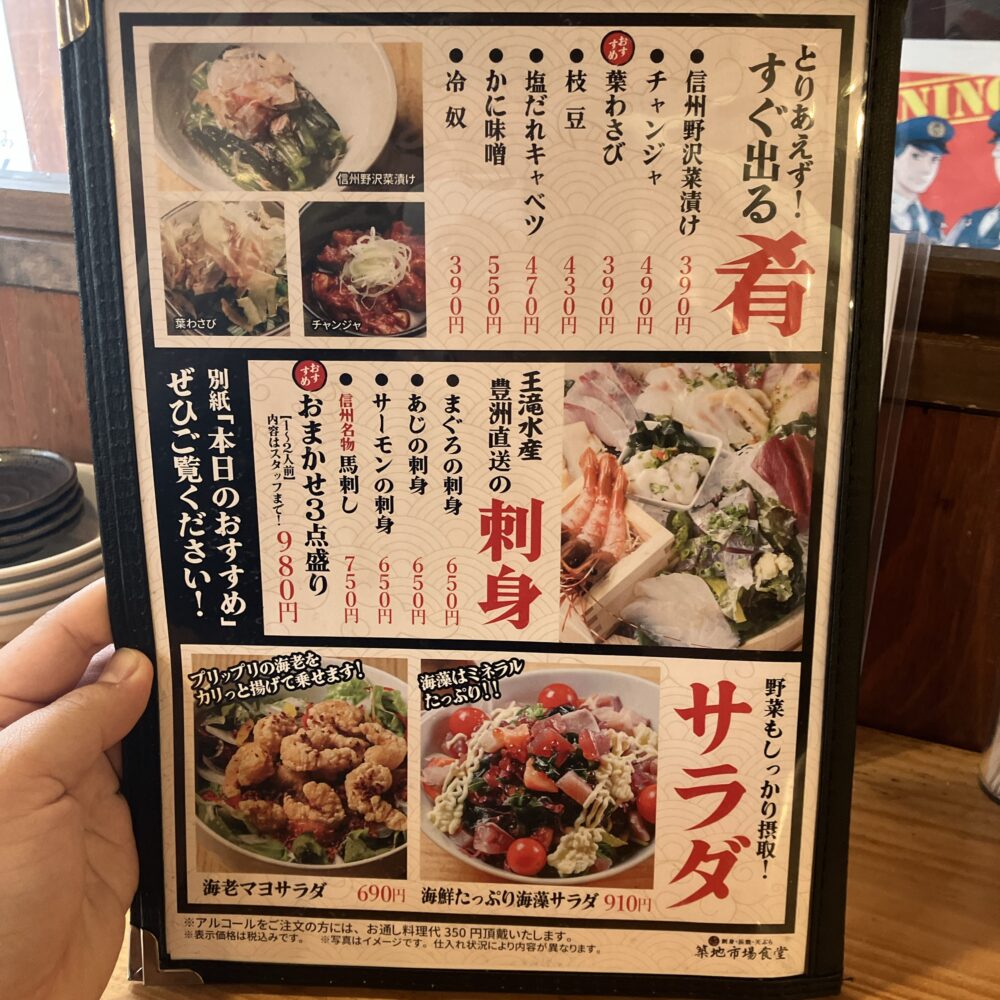 “築地市場”食堂という店名の通り、刺身を中心とした海鮮系を推している感じがしましたね。